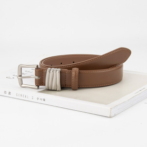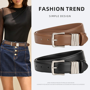 女士牛皮腰带显瘦配牛仔裤复古银扣真皮高级感女细皮带装饰连衣裙