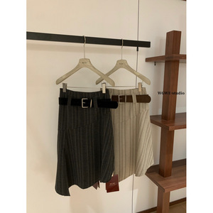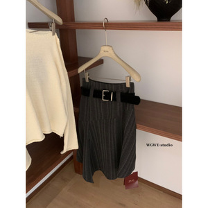 塞纳WGWE7060秋装2025新款下摆鱼尾裙高腰半身裙配皮带