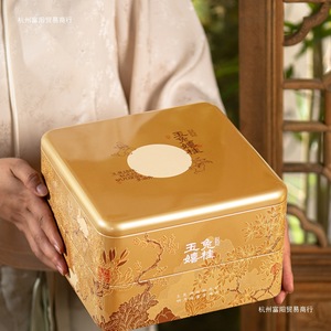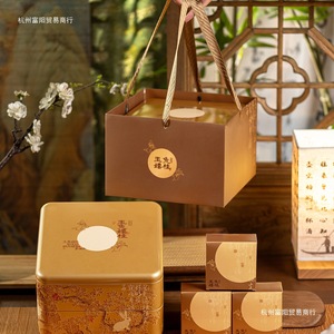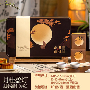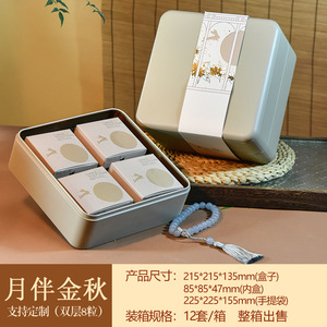 中秋月饼包装盒双层方形8粒铁盒手提创意插画空礼盒定 制厂家