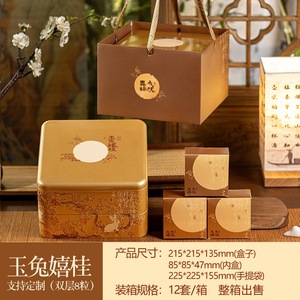 【玉兔嬉桂-8粒】双层方铁盒