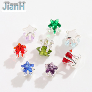 镶嵌水晶锆石彩色爪钻五角星星银底托 diy手链项链手缝钻饰品配件