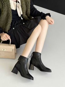 朱朱家小短靴女2025秋冬新单靴法式高跟瘦瘦靴女马丁裸靴26320