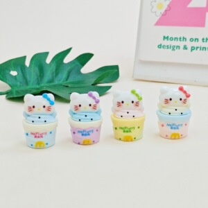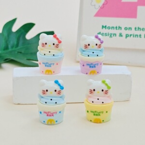 立体卡通KT食玩冰激淋桶猫咪树脂小摆件奶油胶diy小配件创意公仔