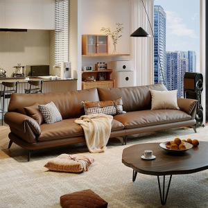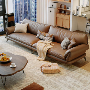 新款意式极简直排沙发真皮沙发客厅小户型家用简约现代复古高级