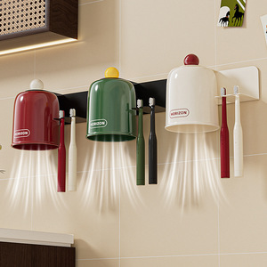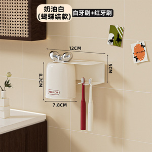 免打孔牙刷置物架浴室磁吸漱口杯壁挂可倒挂沥水电动牙刷杯架家用