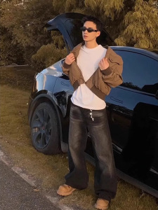 美式复古做旧解构立领夹克男春秋高级感cleanfit宽松百搭短款外套