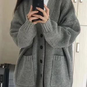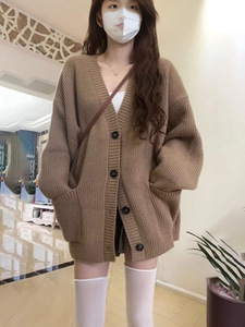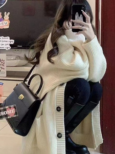 日系中长款毛衣外套女秋冬外搭纯色慵懒复古奶系穿搭软糯针织开衫