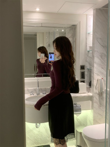 EIA一尧【钓系美人】慵懒感半身裙女秋缎面显瘦短款蕾丝摆半裙