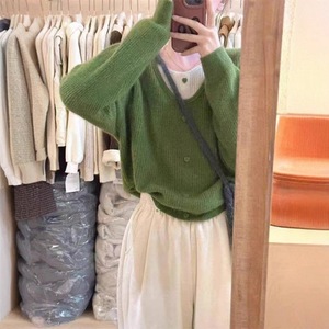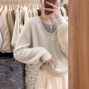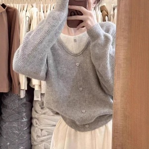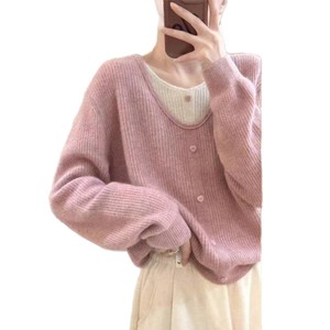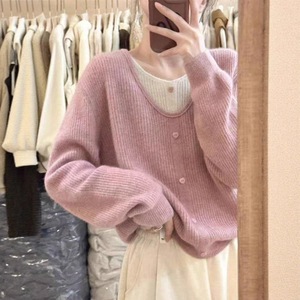 软糯奶fufu粉色假两件针织衫女秋冬季浣熊绒毛衣外搭宽松长袖上衣