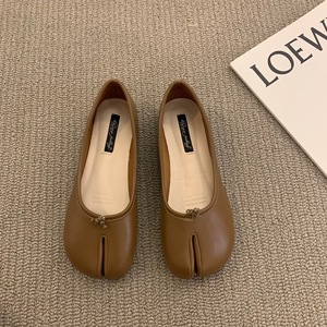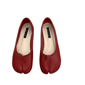 平底豆豆猪脚单鞋女鞋子2025年春秋马蹄分趾拇指猪蹄船鞋红色瓢鞋