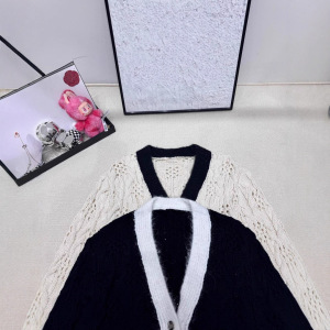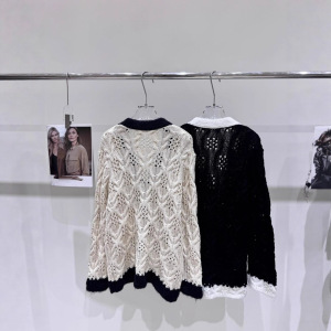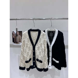 25年秋季新款香家logo金属扣撞色V领针织长袖单排扣开衫宽松毛衣