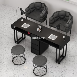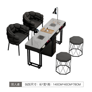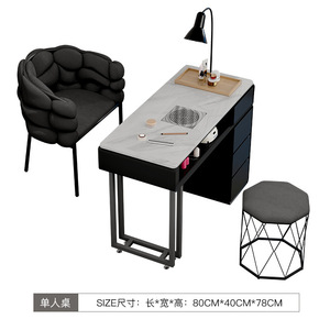 美甲桌椅套装简约经济型单双人轻奢多功能奶油风大理石网红美甲台