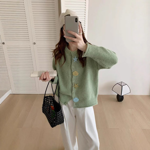 韩系软糯重工纽扣针织开衫女2025秋冬新款宽松慵懒风毛衣外套女装