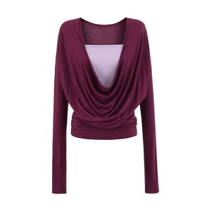 2025秋季新款荡领撞色假两件蝙蝠衫设计感长袖纯欲T恤上衣
