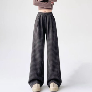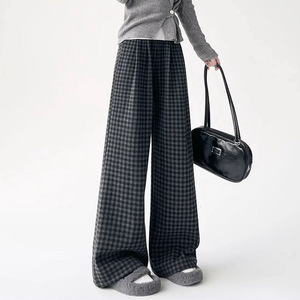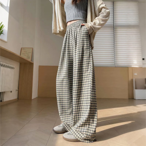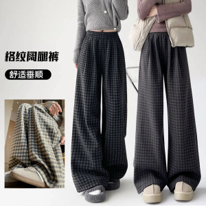 秋季上新~高腰复古格子阔腿裤女宽松百搭慵懒风垂感拖地裤Y566