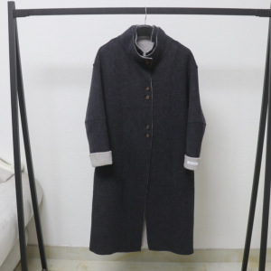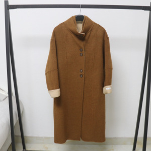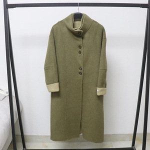 韩版假两件拼色新秋冬双面羊毛大衣女毛呢外套中长款通勤立领拉链