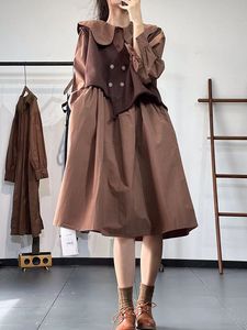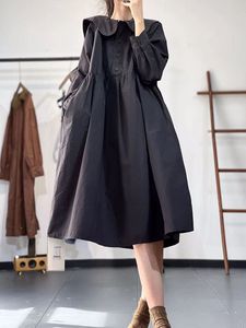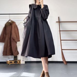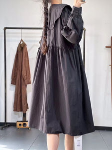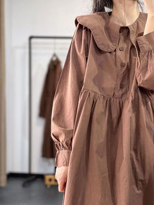 文艺复古大码女装宽松显瘦洋气套头长袖上衣女中长款连衣裙女春秋