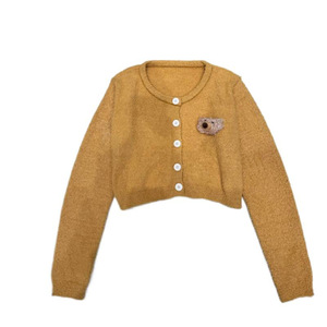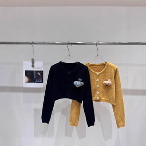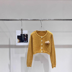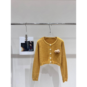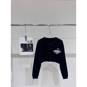 25年秋季新款l3字母刺绣毛绒针织长袖单排扣开衫修身短款毛衣外套