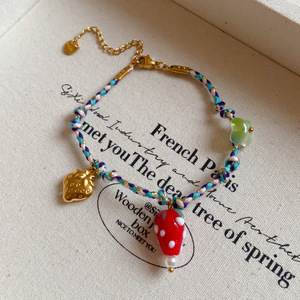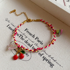 不锈钢红色滴油草莓花朵吊坠手链轻奢小众设计感手环时尚百搭手饰
