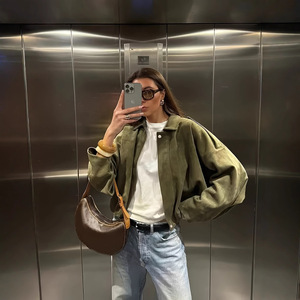 跨境女装批发复古欧美风麂皮绒夹克外套街头潮流翻领拉链外套秋冬