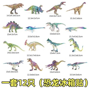 跨境创意恐龙冰箱贴七彩实心仿真恐龙玩具模型儿童玩具套装摆件