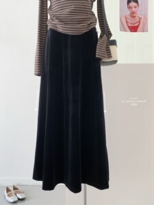 复古千金感优雅气质黑色丝绒半身裙女2025秋高腰显瘦法式A字裙