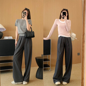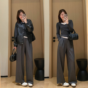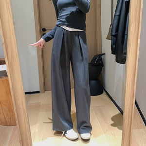 泽黛佳伊高智感西裤!天丝羊毛立体压褶腰直筒阔腿裤显瘦休闲裤女