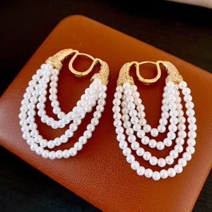 法式复古优雅镶钻锆石多层珍珠流苏耳扣小众设计感耳环轻奢耳饰女