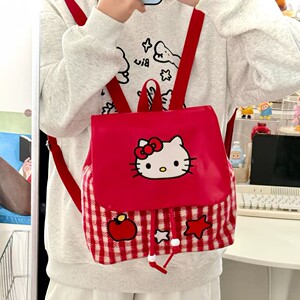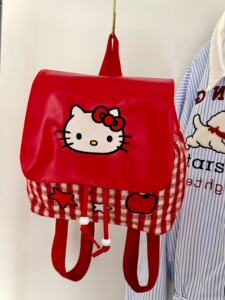 新款ins可爱卡通kt猫双肩包洋气格子设计背包小众少女jk百搭书包