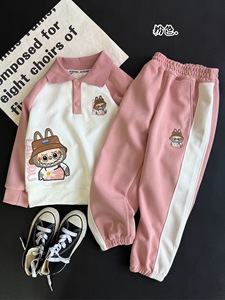 儿童卫衣新品中大童休闲卫衣套装卡通宽松刺绣丑萌小怪兽休闲套装
