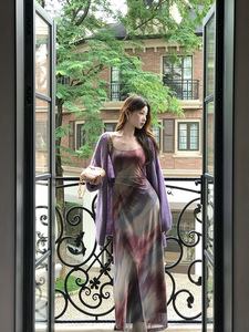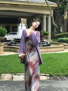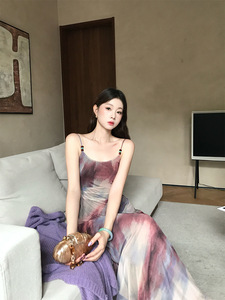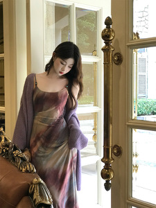 EIA一尧【莫奈画展】买手风连衣裙女秋复古气质晕染显瘦吊带长裙