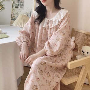 法式碎花睡裙女春秋季长袖睡衣高级感宽松慵懒风家居服甜美可外穿