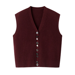 2025年冬季新款女装简约风V领单排扣毛针织开衫马甲小上衣3J4E550