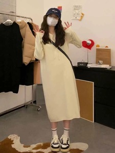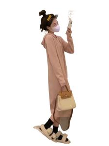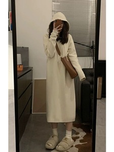 2025秋冬新款连帽显瘦针织连衣裙子女配大衣宽松打底内搭毛衣长裙