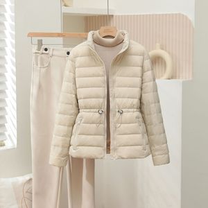 轻薄款羽绒服女立领收腰显瘦拉链长袖时尚休闲90绒松紧腰保暖外套