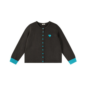 子元2025秋季新款大码胖mm女装刺绣爱心撞色针织开衫女式毛衣F585
