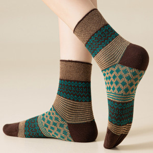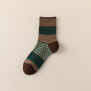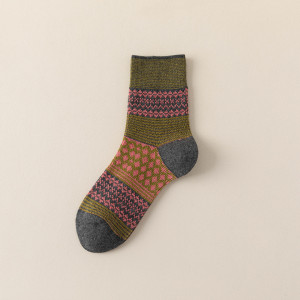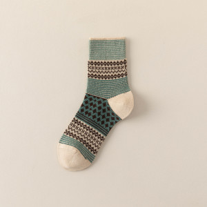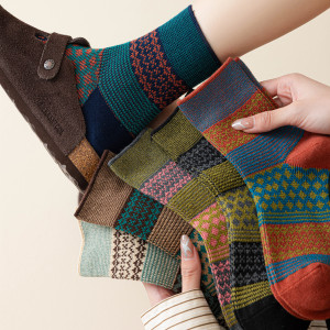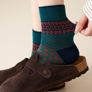 韩系袜子中筒袜秋冬复古民族风双针堆堆袜2025新款女时尚潮流棉袜