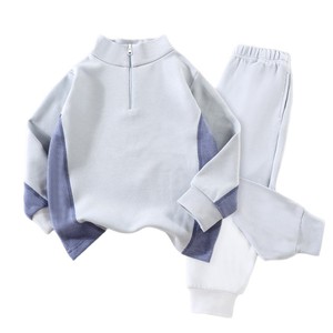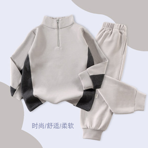 秋冬款儿童长袖t恤半拉链纯色休闲立领运动服男女中大童卫衣套装