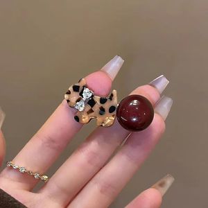 豹纹小狗圆珠侧边夹发夹女2025新款高端发卡子碎发刘海夹前额头饰