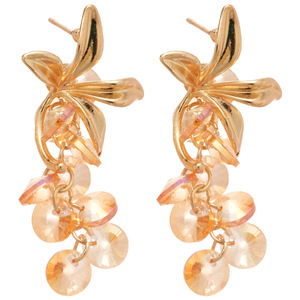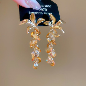 银针花朵香槟色水晶耳环法式宫廷风气质耳钉精致轻奢高级感耳饰女