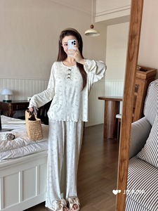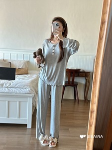JIEAINA小韩风免穿bra美宅衣套装春秋莫代尔长袖甜美ins风家居服