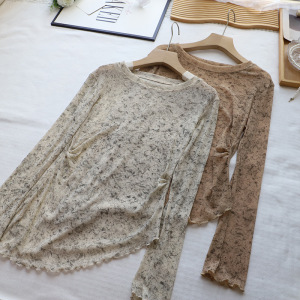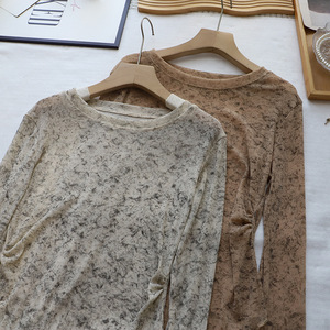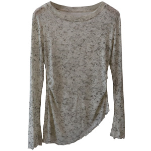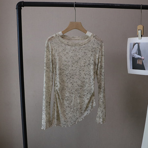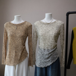 闪闪网纱[比正]2025秋季新韩版时尚晕染微透不规则长袖T恤女5151