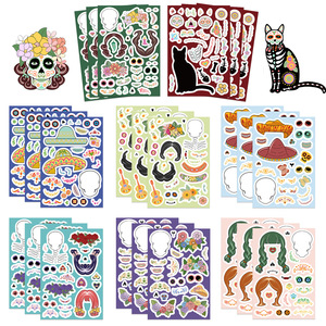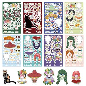 8张卡通墨西哥亡灵节换脸拼贴装饰手机滑板DIY防水跨境万圣节贴纸
