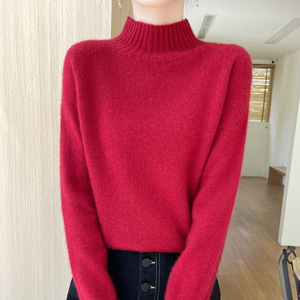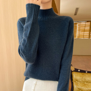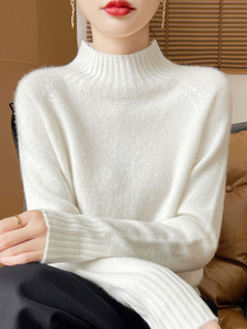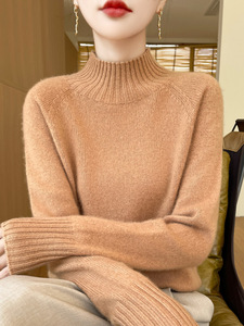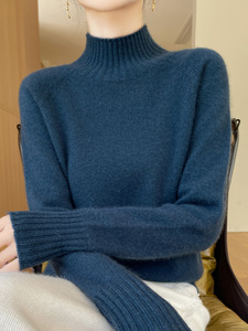一线成衣套头休闲通勤加厚插肩无缝半高领内搭针织衫上衣女宽松