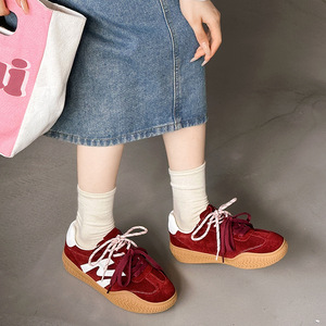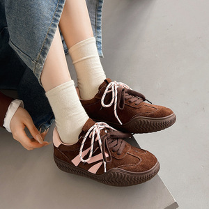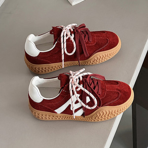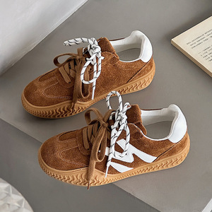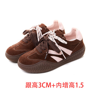 头层牛反绒厚底德训鞋女2025秋新款韩版百搭系带休闲运动鞋阿甘鞋