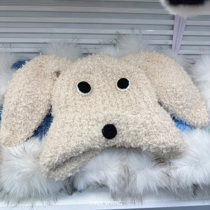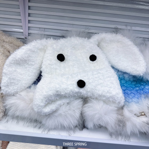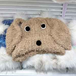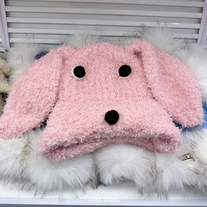 批发韩国2025年早秋新款小狗耳朵包头针织帽女大头围显脸小毛线帽