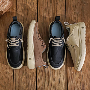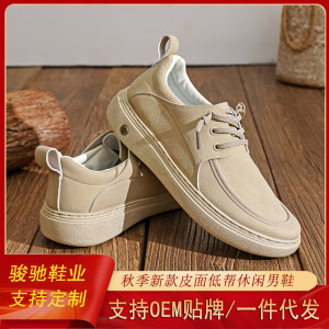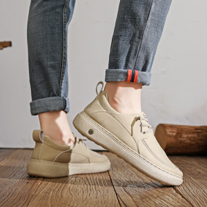 2025年新款男鞋皮面男士休闲鞋轻便舒适板鞋一脚蹬低帮软底懒人鞋