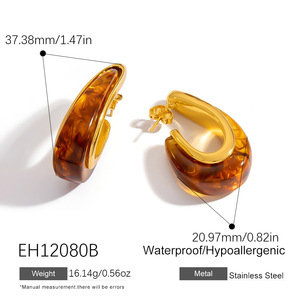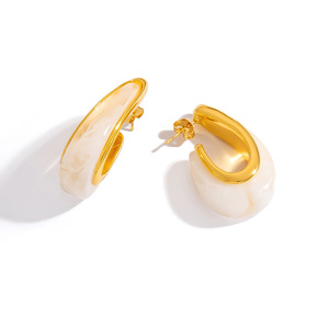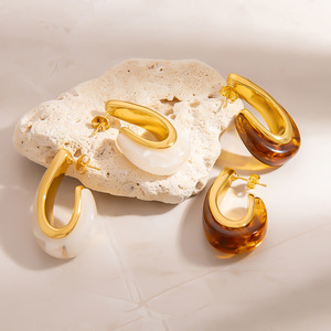 跨境不锈钢耳环U形琥珀色小众设计感轻奢时髦18K金保色耳钉女