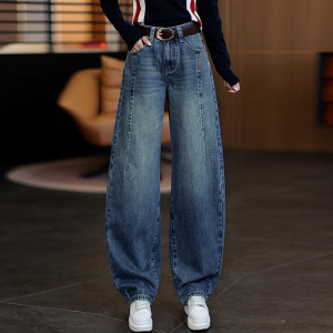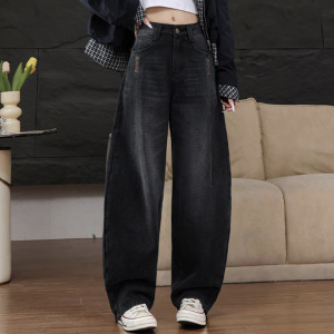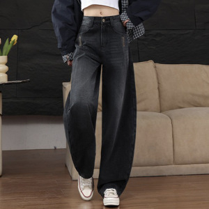 黑灰色弯刀牛仔裤女春秋2025新款复古撞色刺绣百搭高腰显瘦香蕉裤