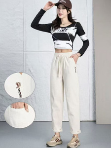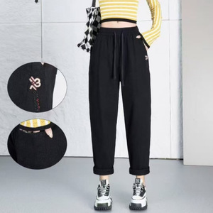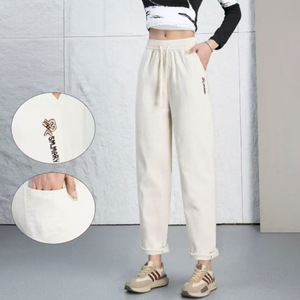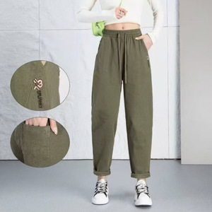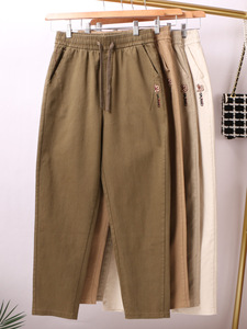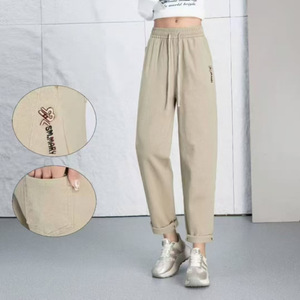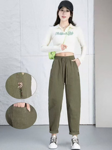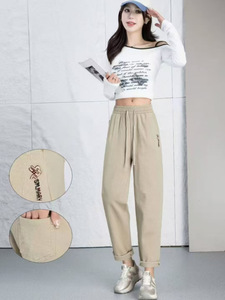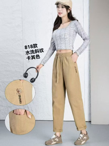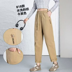 水洗斜纹棉哈伦裤女春秋2025新款宽松休闲大码直筒中年妈妈休闲裤